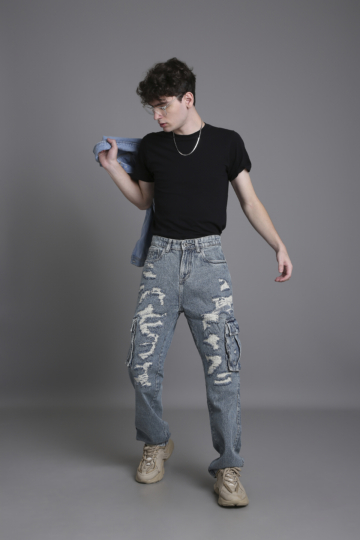 Stylish Light Blue Anti Fit Denim